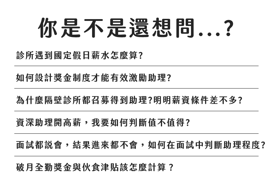 其實勞工契約是客製化的,會依據不同診所做最適合該診所的調整與變化。
